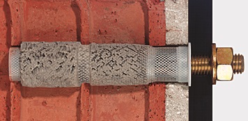 Фиксацию болта обеспечивает резьбовая распорная трубка. Она забивается в посадочное отверстие, после чего расклинивается. В образовавшееся соединение вкручивается несущий стержень.