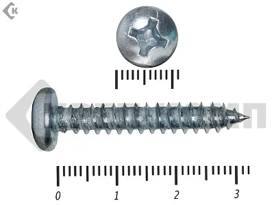 Саморез полукруглый, DIN7981, цинк