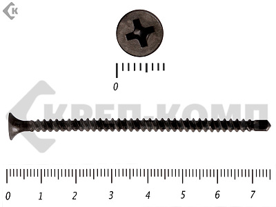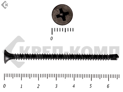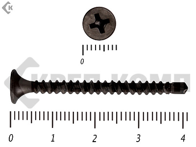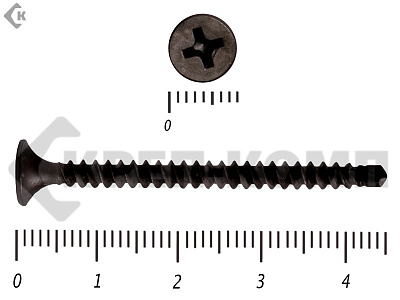 Саморез черный для гипсокартона (гипсокартон - металл) имеет частую резьбу, острый наконечник, и головку потайную крест ph-2, покрытие фосфат. Саморезы применяются для крепления гипсокартонных листов к металлическому профилю, саморезы способны закручиваться в металлический профиль толщиной до 0,9 мм, если необходимо закрутить саморез в профиль большей толщины, то используют сверло по металлу диаметром 2,0-2,5 мм. Для закручивания саморезов используют насадки для саморезов под шуруповерт. Также саморезы можно закручивать отверткой крест ph-2.