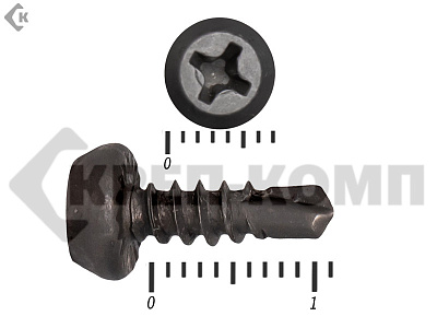 - Саморезы со сверловыми наконечниками РТ-3 (длиной 7 мм, рис. 2) или РТ-5 (длиной 15 мм, рис. 3) используются для того, чтобы крепить различные конструкции к толстолистовому металлу или металлопрокату без предварительного засверливания отверстий. Например, саморез-сверло по металлу с наконечником РТ-5 может при закручивании просверлить стальной лист толщиной до 12 мм.