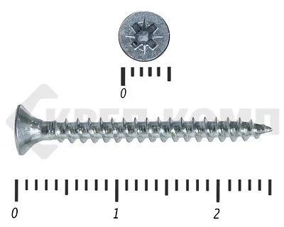 Верхняя головка самореза – плоская с крестообразным шлицом. Шлицы бывают двух видов: