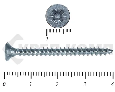 - Pz («Позидрив») – у желтых и белых универсальных саморезов. Размер шлица (№1, №2 или №3) зависит от диаметра головки. Чем больше размер крепежа – тем больше шлиц под крестовую отвертку или биту-насадку для шуруповерта;