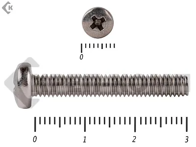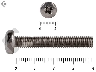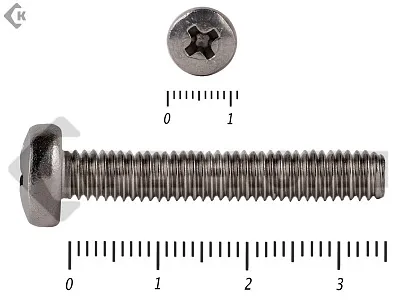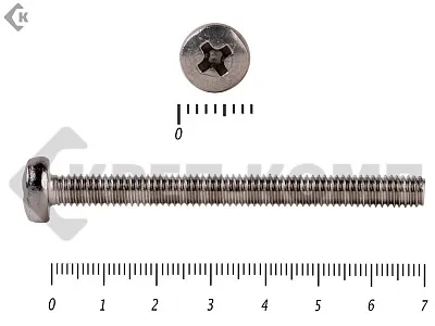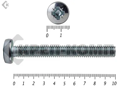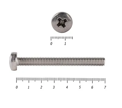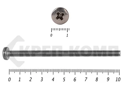Винт с полукруглой головкой - это стальной стержень с полной метрической резьбой. Существует два варианта исполнения - с прямым шлицем и с крестообразным. Полукруглая головка обеспечивает лёгкий захват простой отверткой.